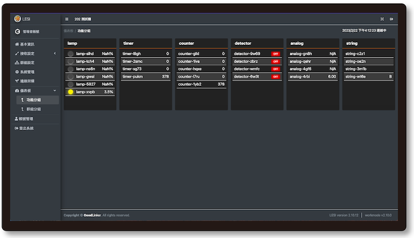 BCS-MX 支援 GoodLinker 企業雲端戰情室 平台,可用於工業設備狀態監視,環境監視和警報。 密切監看工業設備狀態,內建安燈系統設備發生異常即時提醒,加速故障排除時間、減少產線非必要的停機。