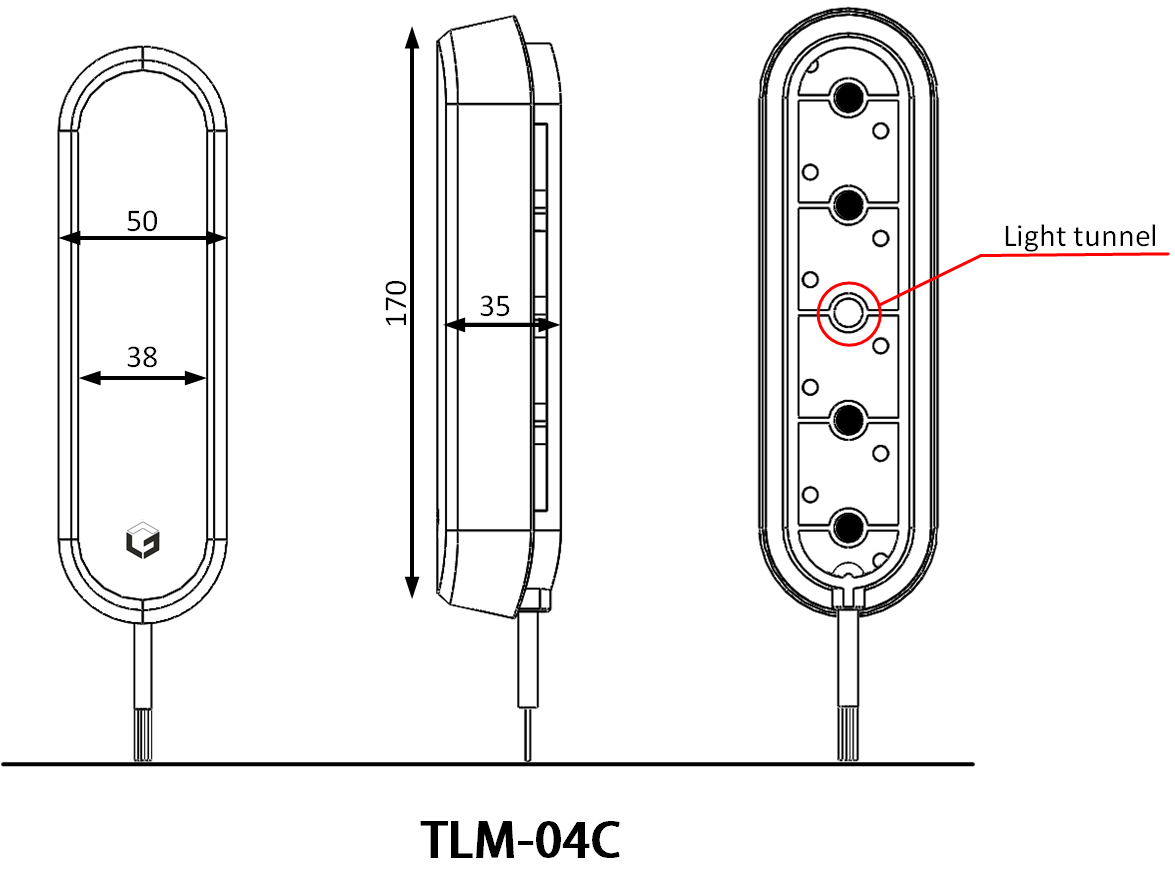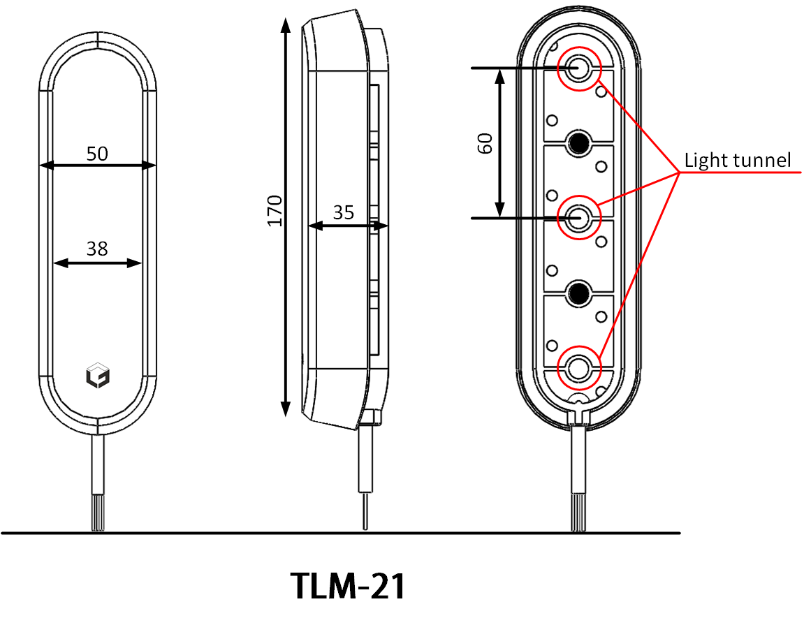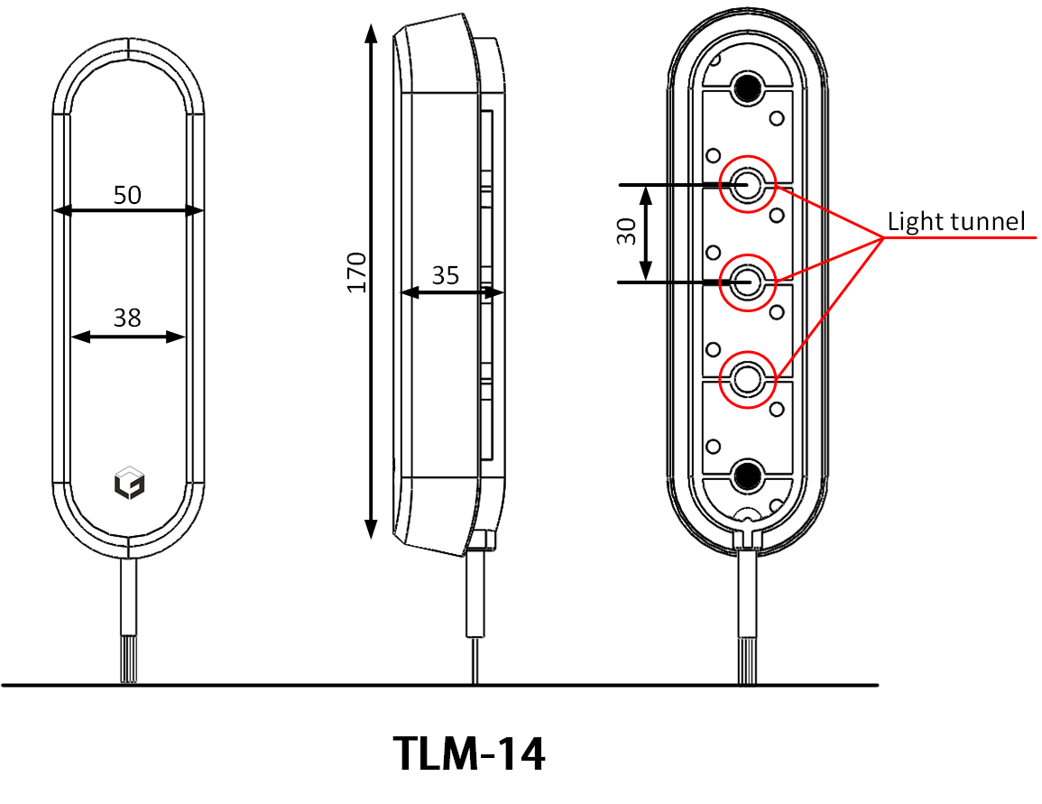下圖顯示了 GOODLINKER® 塔燈感測器系列的尺寸: